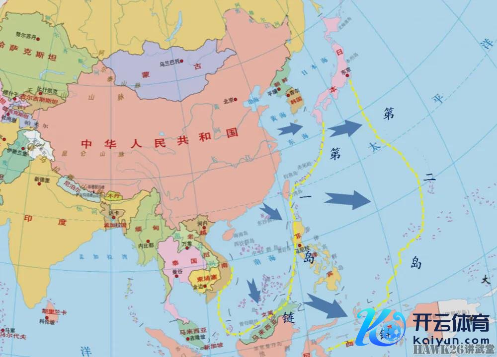 第一岛链和第二岛链暗示图。