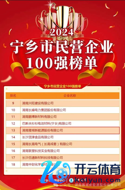2月11日,在宁乡经开区举行的“2025年经济责任暨安全坐蓐、生态环境保护”大会上,雅城新能源上榜2024年度宁乡经开区工业企业“界限50强”。