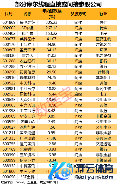 从阛阓证据来看,死心9月19日,这些径直或辗转参股公司年内平均涨幅接近35%,长飞光纤、ST华通、和而泰年内涨幅卓著100%。